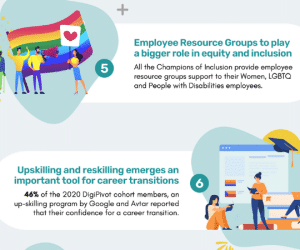 - Upskilling and reskilling emerge as a major tool for career transitions- 46% of the 2020 DigiPivot cohort members and up-skilling program by Google and Avtar reported their confidence for a career transition.